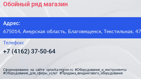 Обойный ряд, магазин по адресу 675014, Амурская область, Благовещенск, Текстильная, 47 в дальнейшем Организация, размещена в следующих категориях: