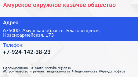 Амурское окружное казачье общество по адресу 675000, Амурская область, Благовещенск, Красноармейская, 173 в дальнейшем Организация, размещена в следующих категориях: