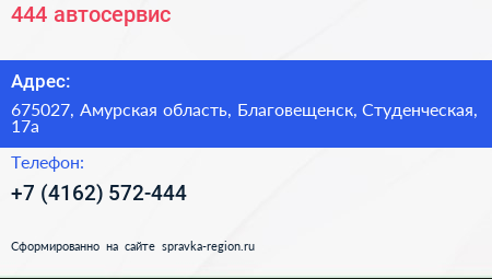 444, автосервис по адресу 675027, Амурская область, Благовещенск, Студенческая, 17а в дальнейшем Организация, размещена в следующих категориях: