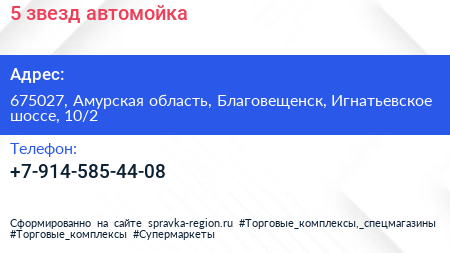 5 звезд, автомойка по адресу 675027, Амурская область, Благовещенск, Игнатьевское шоссе, 10/2 в дальнейшем Организация, размещена в следующих категориях: