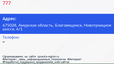 777 по адресу 675028, Амурская область, Благовещенск, Новотроицкое шоссе, 6/1 в дальнейшем Организация, размещена в следующих категориях:
