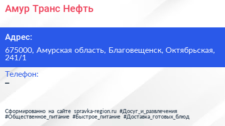 Амур-Транс-Нефть по адресу 675000, Амурская область, Благовещенск, Октябрьская, 241/1 в дальнейшем Организация, размещена в следующих категориях: