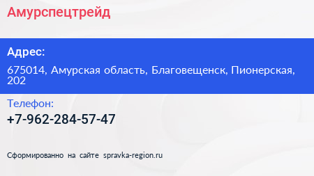 Амурспецтрейд по адресу 675014, Амурская область, Благовещенск, Пионерская, 202 в дальнейшем Организация, размещена в следующих категориях: