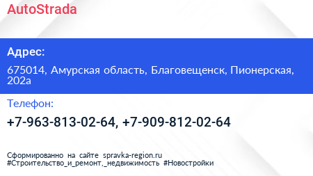 AutoStrada по адресу 675014, Амурская область, Благовещенск, Пионерская, 202а в дальнейшем Организация, размещена в следующих категориях: