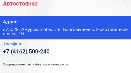 Автостоянка по адресу 675028, Амурская область, Благовещенск, Новотроицкое шоссе, 10 в дальнейшем Организация, размещена в следующих категориях:
