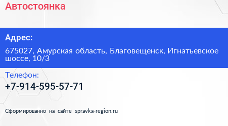Автостоянка по адресу 675027, Амурская область, Благовещенск, Игнатьевское шоссе, 10/3 в дальнейшем Организация, размещена в следующих категориях: