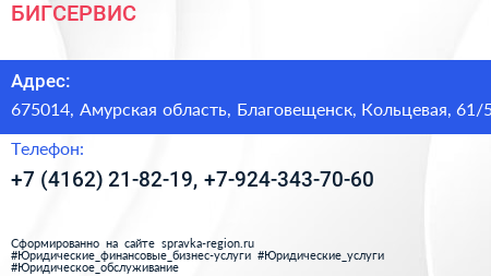БИГСЕРВИС по адресу 675014, Амурская область, Благовещенск, Кольцевая, 61/5 в дальнейшем Организация, размещена в следующих категориях: