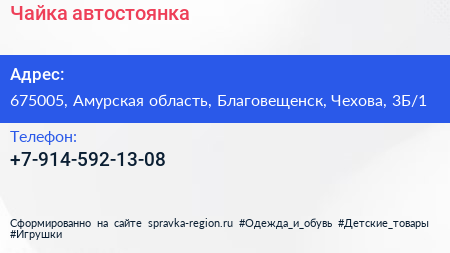 Чайка, автостоянка по адресу 675005, Амурская область, Благовещенск, Чехова, 3Б/1 в дальнейшем Организация, размещена в следующих категориях: