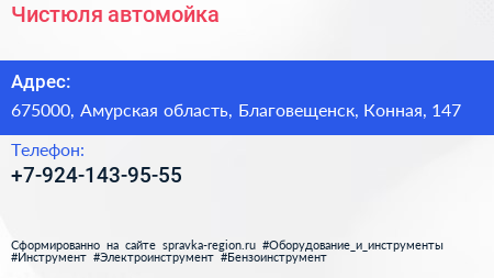 Чистюля, автомойка по адресу 675000, Амурская область, Благовещенск, Конная, 147 в дальнейшем Организация, размещена в следующих категориях: