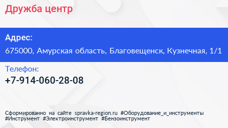 Дружба, центр по адресу 675000, Амурская область, Благовещенск, Кузнечная, 1/1 в дальнейшем Организация, размещена в следующих категориях: