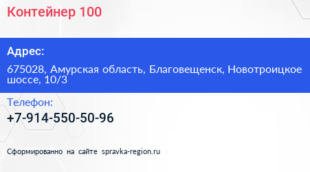 Контейнер №100 по адресу 675028, Амурская область, Благовещенск, Новотроицкое шоссе, 10/3 в дальнейшем Организация, размещена в следующих категориях: