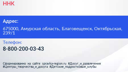 ННК по адресу 675000, Амурская область, Благовещенск, Октябрьская, 239/1 в дальнейшем Организация, размещена в следующих категориях: