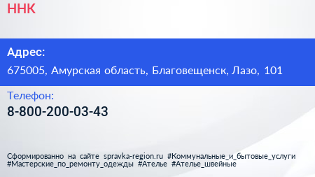 ННК по адресу 675005, Амурская область, Благовещенск, Лазо, 101 в дальнейшем Организация, размещена в следующих категориях: