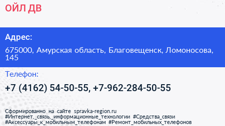 ОЙЛ-ДВ по адресу 675000, Амурская область, Благовещенск, Ломоносова, 145 в дальнейшем Организация, размещена в следующих категориях: