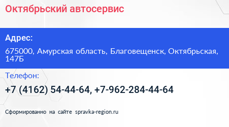 Октябрьский, автосервис по адресу 675000, Амурская область, Благовещенск, Октябрьская, 147Б в дальнейшем Организация, размещена в следующих категориях: