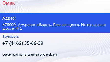 Омик по адресу 675000, Амурская область, Благовещенск, Игнатьевское шоссе, 4/1 в дальнейшем Организация, размещена в следующих категориях: