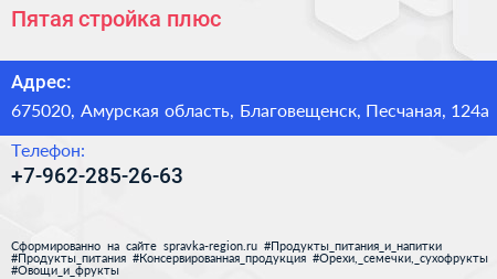Пятая стройка-плюс по адресу 675020, Амурская область, Благовещенск, Песчаная, 124а в дальнейшем Организация, размещена в следующих категориях: