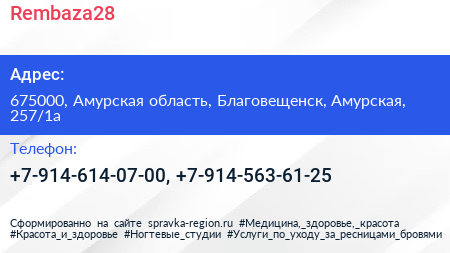Rembaza28 по адресу 675000, Амурская область, Благовещенск, Амурская, 257/1а в дальнейшем Организация, размещена в следующих категориях: