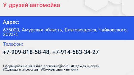 У друзей, автомойка по адресу 675003, Амурская область, Благовещенск, Чайковского, 209а/1 в дальнейшем Организация, размещена в следующих категориях: