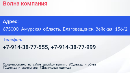 Волна, компания по адресу 675000, Амурская область, Благовещенск, Зейская, 156/2 в дальнейшем Организация, размещена в следующих категориях: