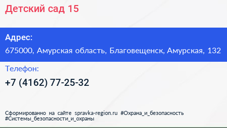 Детский сад №15 по адресу 675000, Амурская область, Благовещенск, Амурская, 132 в дальнейшем Организация, размещена в следующих категориях: