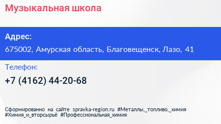 Музыкальная школа по адресу 675002, Амурская область, Благовещенск, Лазо, 41 в дальнейшем Организация, размещена в следующих категориях: