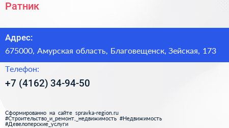 Ратник по адресу 675000, Амурская область, Благовещенск, Зейская, 173 в дальнейшем Организация, размещена в следующих категориях: