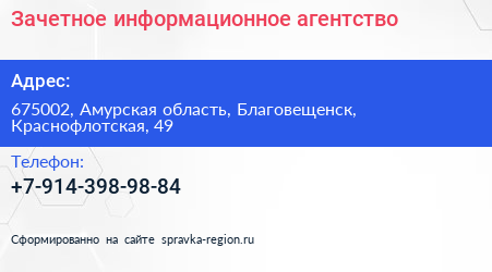 Зачетное, информационное агентство по адресу 675002, Амурская область, Благовещенск, Краснофлотская, 49 в дальнейшем Организация, размещена в следующих категориях: