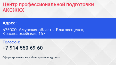 Центр профессиональной подготовки, АКСЖКХ по адресу 675000, Амурская область, Благовещенск, Красноармейская, 157 в дальнейшем Организация, размещена в следующих категориях: