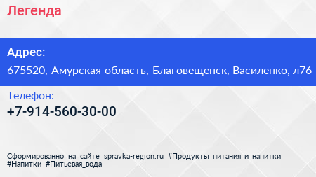 Легенда по адресу 675520, Амурская область, Благовещенск, Василенко, л76 в дальнейшем Организация, размещена в следующих категориях: