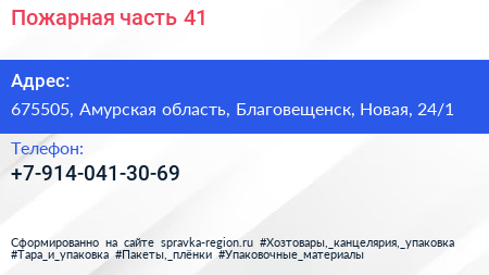 Пожарная часть №41 по адресу 675505, Амурская область, Благовещенск, Новая, 24/1 в дальнейшем Организация, размещена в следующих категориях: