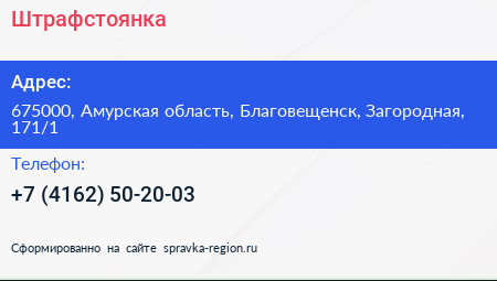 Штрафстоянка по адресу 675000, Амурская область, Благовещенск, Загородная, 171/1 в дальнейшем Организация, размещена в следующих категориях: