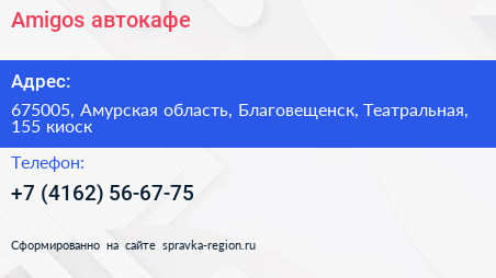 Amigos, автокафе по адресу 675005, Амурская область, Благовещенск, Театральная, 155 киоск в дальнейшем Организация, размещена в следующих категориях: