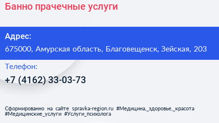 Банно-прачечные услуги по адресу 675000, Амурская область, Благовещенск, Зейская, 203 в дальнейшем Организация, размещена в следующих категориях:
