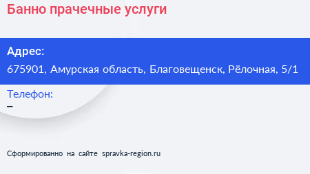 Банно-прачечные услуги по адресу 675901, Амурская область, Благовещенск, Рёлочная, 5/1 в дальнейшем Организация, размещена в следующих категориях: