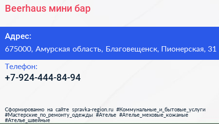 Beerhaus, мини-бар по адресу 675000, Амурская область, Благовещенск, Пионерская, 31 в дальнейшем Организация, размещена в следующих категориях: