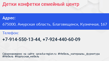 Детки-конфетки, семейный центр по адресу 675000, Амурская область, Благовещенск, Кузнечная, 167 в дальнейшем Организация, размещена в следующих категориях: