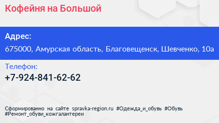Кофейня на Большой по адресу 675000, Амурская область, Благовещенск, Шевченко, 10а в дальнейшем Организация, размещена в следующих категориях: