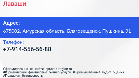 Лаваши по адресу 675002, Амурская область, Благовещенск, Пушкина, 91 в дальнейшем Организация, размещена в следующих категориях: