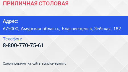 ПРИЛИЧНАЯ СТОЛОВАЯ по адресу 675000, Амурская область, Благовещенск, Зейская, 182 в дальнейшем Организация, размещена в следующих категориях: