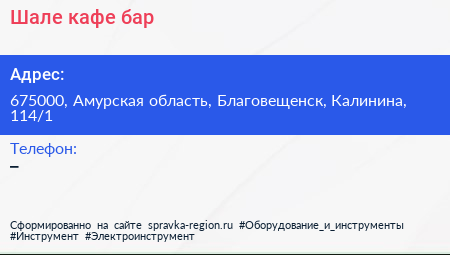 Шале, кафе-бар по адресу 675000, Амурская область, Благовещенск, Калинина, 114/1 в дальнейшем Организация, размещена в следующих категориях: