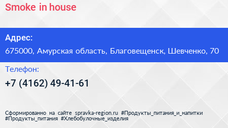 Smoke in house по адресу 675000, Амурская область, Благовещенск, Шевченко, 70 в дальнейшем Организация, размещена в следующих категориях:
