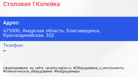 Столовая №1 Копейка по адресу 675000, Амурская область, Благовещенск, Красноармейская, 102 в дальнейшем Организация, размещена в следующих категориях: