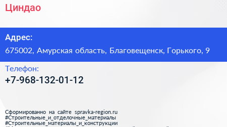 Циндао по адресу 675002, Амурская область, Благовещенск, Горького, 9 в дальнейшем Организация, размещена в следующих категориях: