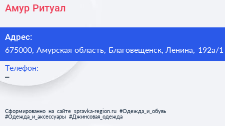 Амур-Ритуал по адресу 675000, Амурская область, Благовещенск, Ленина, 192а/1 в дальнейшем Организация, размещена в следующих категориях: