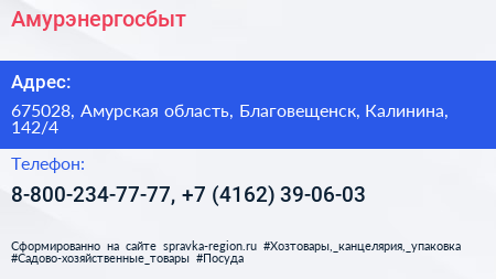 Амурэнергосбыт по адресу 675028, Амурская область, Благовещенск, Калинина, 142/4 в дальнейшем Организация, размещена в следующих категориях: