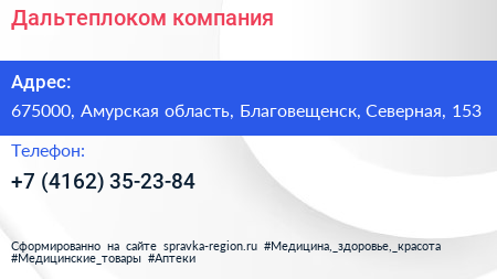 Дальтеплоком, компания по адресу 675000, Амурская область, Благовещенск, Северная, 153 в дальнейшем Организация, размещена в следующих категориях: