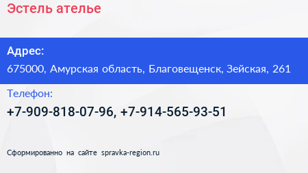 Эстель, ателье по адресу 675000, Амурская область, Благовещенск, Зейская, 261 в дальнейшем Организация, размещена в следующих категориях: