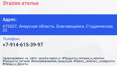 Эталон, ателье по адресу 675027, Амурская область, Благовещенск, Студенческая, 21 в дальнейшем Организация, размещена в следующих категориях: