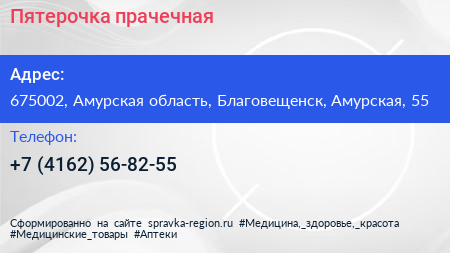 Пятерочка, прачечная по адресу 675002, Амурская область, Благовещенск, Амурская, 55 в дальнейшем Организация, размещена в следующих категориях: